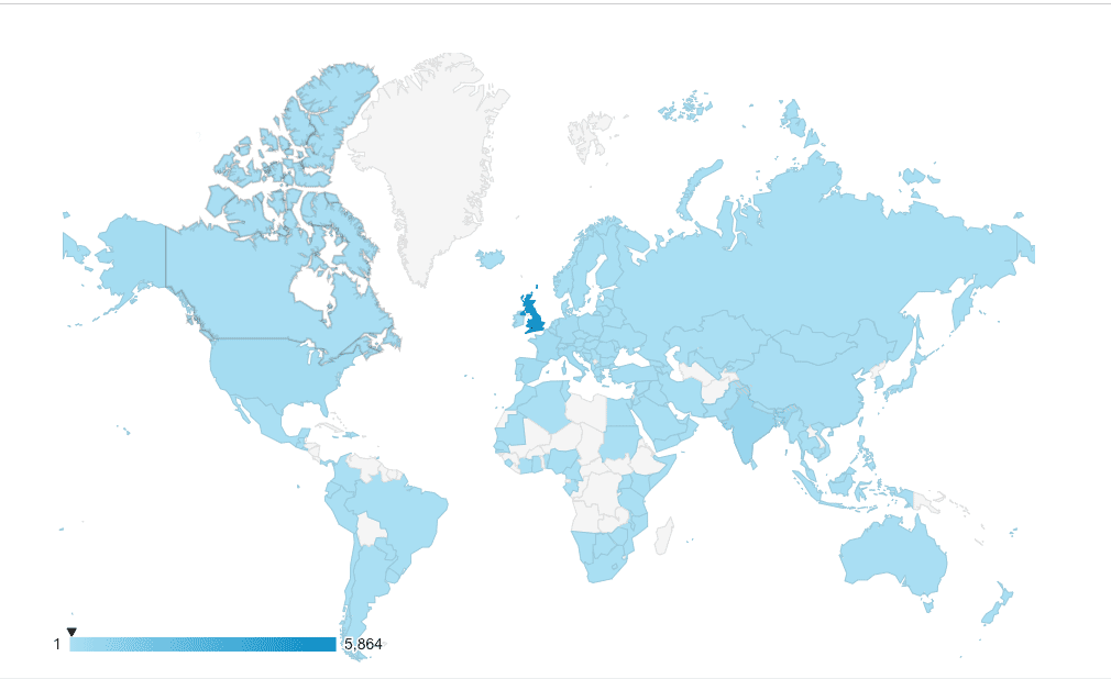 GA4 shows users or sessions on your site by country. Because we've filtered by Google / CPC we're only seeing Google Ads traffic.